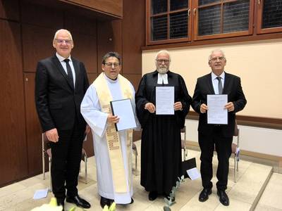 Für engere Zusammenarbeit: Vertreter von katholischer, evangelischer und neuapostolischer Kirche unterzeichneten am 13. November 2024 die Gründungsurkunde der ACK Bretten.